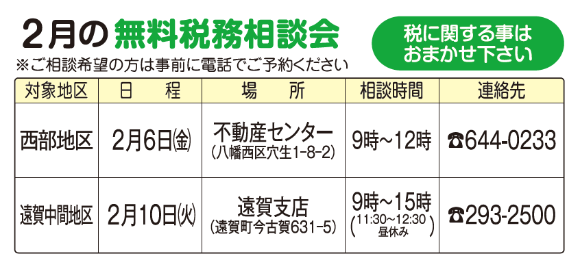 令和8年2月の税務相談会のお知らせ