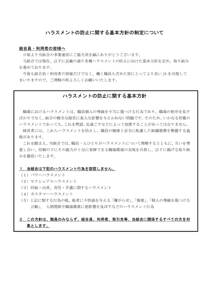 ハラスメントの防止に関する基本方針について
