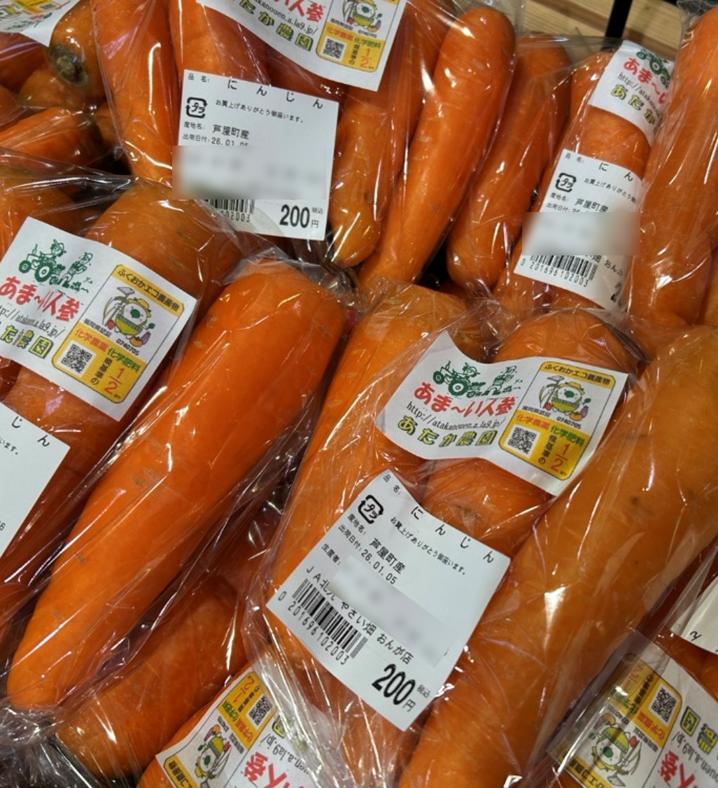 金融店舗(中間支店)併設の小規模店舗です。遠賀郡の新鮮な秋冬野菜をご用意しております。ぜひお越しください。