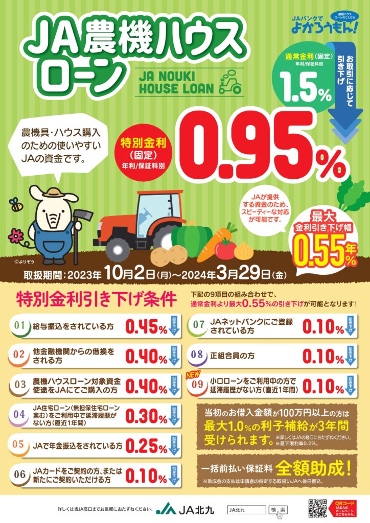 農機ハウスローン申込概要<期間:2025年4月1日(火)~2026年3月31日(火)>